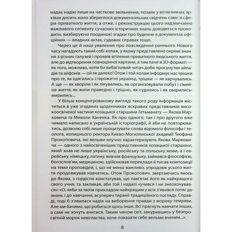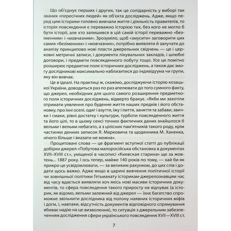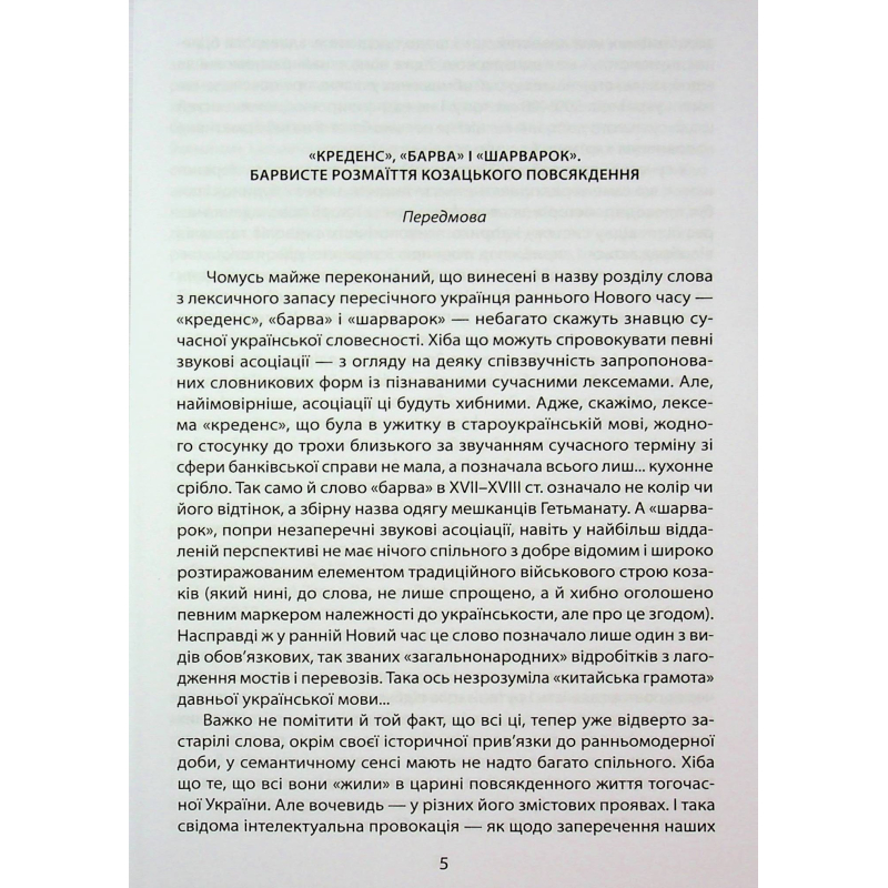 Книжка «Коровай свиного сала в пуд» представляє українську історію не лише «без брому» та «без істерики», а й без таких, на жаль, уже традиційних «приправ» сучасного українського історіописання, як надмірний пафос, віктимизація / героїзація, пошуки в нашому минулому ареалів зародження людських цивілізацій і навіть з’яв найперших у світі конституцій. Натомість на сторінках книжки панує спокійна й довірлива розмова з вдумливим читачем про сутність звичних і, як виявляється, позачасових житейських радостей і турбот. Про те, в оточенні яких речей жили українці в козацькі часи, у що вдягались, що їли і що пили, як хворіли та проганяли недуги, як господарювали і торгували, як бенкетували та розважались — інтелектуально й не дуже... Про те, якими схожими й водночас різними можуть бути життєві пріоритети впродовж багатьох сотень літ. А також про те, як, здавалося б, звичні слова, мандруючи століттями, часом набувають зовсім незрозумілих значень.