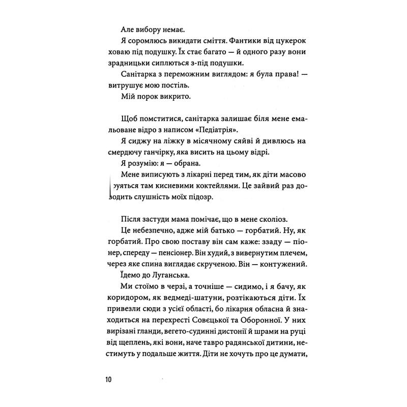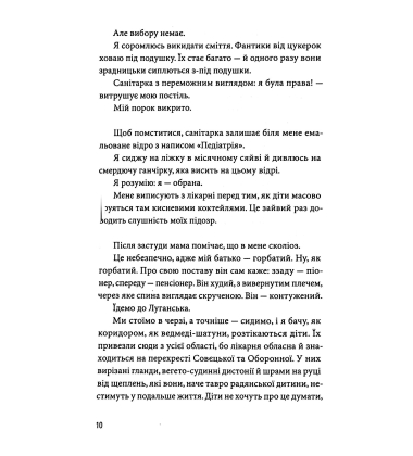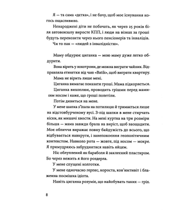 «Мій прапор запісяв котик» — це спроба авторки змалювати своє життя в невеличкому смт біля Луганська. Здається, що час там зупинився й надовго застряг чи то в безнадійних радянських декораціях, чи то в скрутних 90-тих. Там неначе утворився непробивний мур між сучасністю й новими реаліями, інформацію найчастіше черпають з телевізора (звісно, з російськими каналами), газети «СПІД-Інфо» чи «Факти», а над усім цим упевненими териконами височіють: «Бо ми всігда так робили», «Бо ти ж дєвочка», «Жити треба так, шоб тобі ніхто не завидував», «Не жили харашо – не треба й починать». Цей текст — суцільна іронія й стьоб, сарказм на межі, здається іноді, здорового глузду. Особливо складно все в тих, хто «не такий», «самий умний» і взагалі «тяжко тобі буде жить з твоїм характєром». Це світ, де хворих дітей водять до волшебного дєда, який викатує яйцем, де дівчинку народжують, «щоб помощниця була» і старанно приховують непрезентабельні, на думку пильної громади, родинні таємниці (наприклад, чиєсь єврейське походження). Текст сповнений гумору (так, іноді — чорного), а іноді вражає трагізмом. У ньому немов мимохідь згадуються часи, коли за згадку, що ти їв нині хліб, заарештовували всю родину, а ті, хто вцілів, вибравшись із розстрільної ями, до кінця життя жили між реальністю й своїм внутрішнім ненастанним жахом, що «документи можуть бути погані». І ні, «Мій прапор…» не написано з інтенцією «зрозумійте ж нарешті Донбас». Власне «Мій прапор запісяв котик» — це всі ми, іноді по різні боки муру.