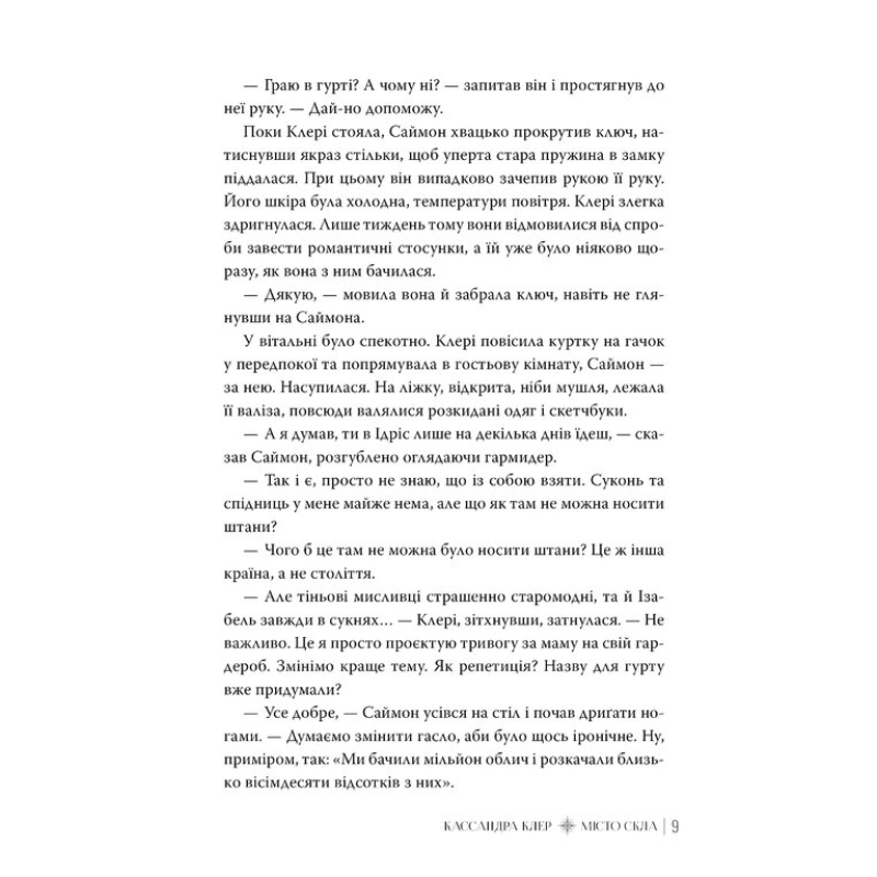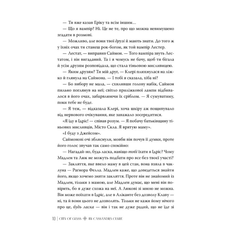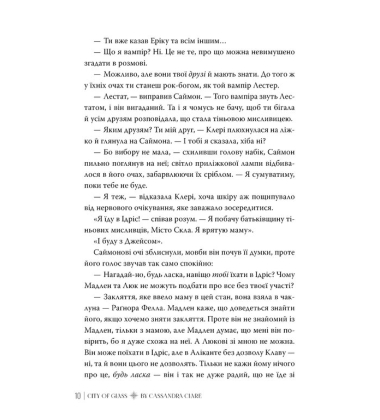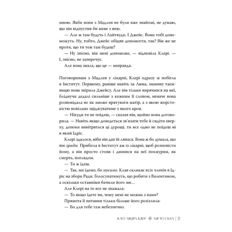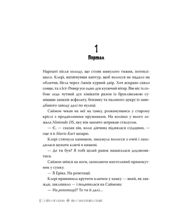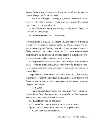 Щоб урятувати маму, Клері має вирушити в Місто Скла — давню батьківщину тіньових мисливців. І байдуже, що Закон забороняє входити туди без дозволу, а його порушення карається смертю. Та найгірше, що Джейс, виявляється, зовсім не хоче пускати її в це місце, а Саймона кинули в темницю тіньові мисливці, яких насторожує вампір, що не боїться денного світла. Намагаючись розкрити родинні таємниці, Клері об’єднується із загадковим тіньовим мисливцем, на ім’я Себастьян. Валентин збирає всі свої сили, щоб раз і назавжди знищити тіньових мисливців, тож їхня єдина надія здолати його — укласти союз зі споконвічними ворогами. Та чи здатні нижньосвітці й нефіліми забути про давню ворожнечу заради спільної мети? А коли Джейс нарешті усвідомить, на що готовий піти заради Клері, чи зможе вона приборкати свої нововіднайдені сили й допомогти Місту Скла, хай чого б це їй коштувало? Заборонене кохання, смертельні таємниці минулого та протистояння Клері й Джейса з Валентином — про все це читайте на сторінках третьої частини «Знарядь Смерті».