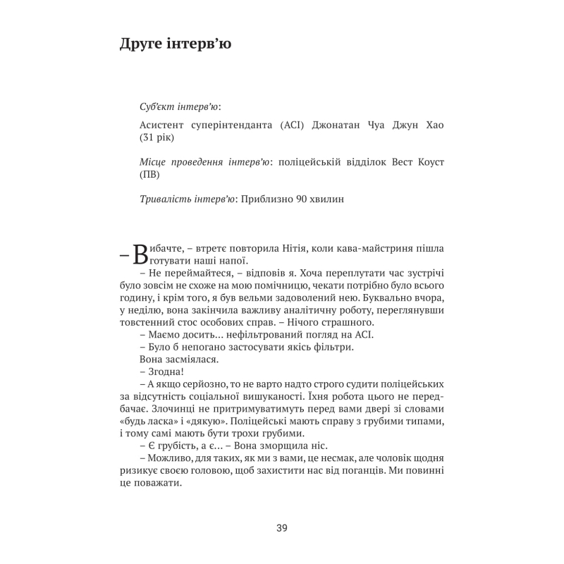 Захоплюючий соціальний детектив «Після слідства» оголює темні сторони сінгапурської бюрократії. Написаний сухою мовою урядового звіту, роман залишає моторошне відчуття втягнення до велетенської, жорстокої та бездушної машини під назвою Держава, яка перемелює людські долі, спотворюючи життя маленької людини. Саме така людина, сержант, тяжко поранений нібито випадковим пострілом у голову, опиняється в центрі службового розслідування. Справу доручають досвідченому бюрократові та його молодшій колезі. Як і варто було очікувати, справа видається не надто очевидною… На тлі непересічного сюжету особливої уваги заслуговує протистояння двох моральних світоглядів. Перший утілює цинічний кар’єрист, холодний і ефективний бюрократичний «монстр», надійна опора держави. Другий обстоює його духовна антитеза, щира та співчутлива стажерка, якій бракує холодної, бездушної відстороненості, що панує у системі. Неочікуваний фінал нікого не залишить байдужим.