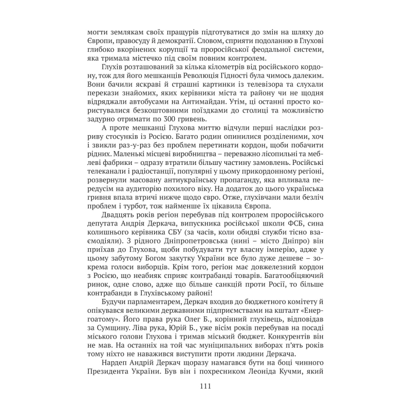 Мішель Терещенко пропонує власний погляд на події 2002–2022 років. Роман відомого в Україні бізнесмена, письменника, громадського і політичного діяча, нащадка славетного роду промисловців і меценатів Терещенків торкається, мабуть, одного з найскладніших і заразом найцікавіших і найщасливіших етапів його кар’єри в Україні. Твір занурює у лабіринт політичних інтриг, небезпечних і непередбачуваних. Вири життя несподівано заносять успішного бізнесмена, громадянина Франції, на батьківщину його предків – незрозумілу й не надто заможну. Разом із нею та її народом Мішель Терещенко проходить важкі часи злетів і падінь. Він здобуває українське громадянство, спілкується з багатьма відомими представниками політичного істеблішменту. Нарешті він отримує блискучу перемогу на виборах міського голови Глухова, ладний зробити все задля поліпшення життя своєї громади. Але… Важкий спадок минулого у вигляді злочинної місцевої влади, корупції, придушення всього нового, прогресивного стає на його шляху. Утім, він не здається.