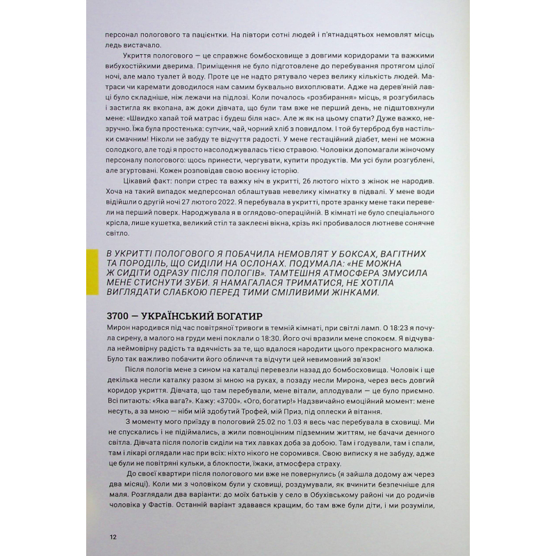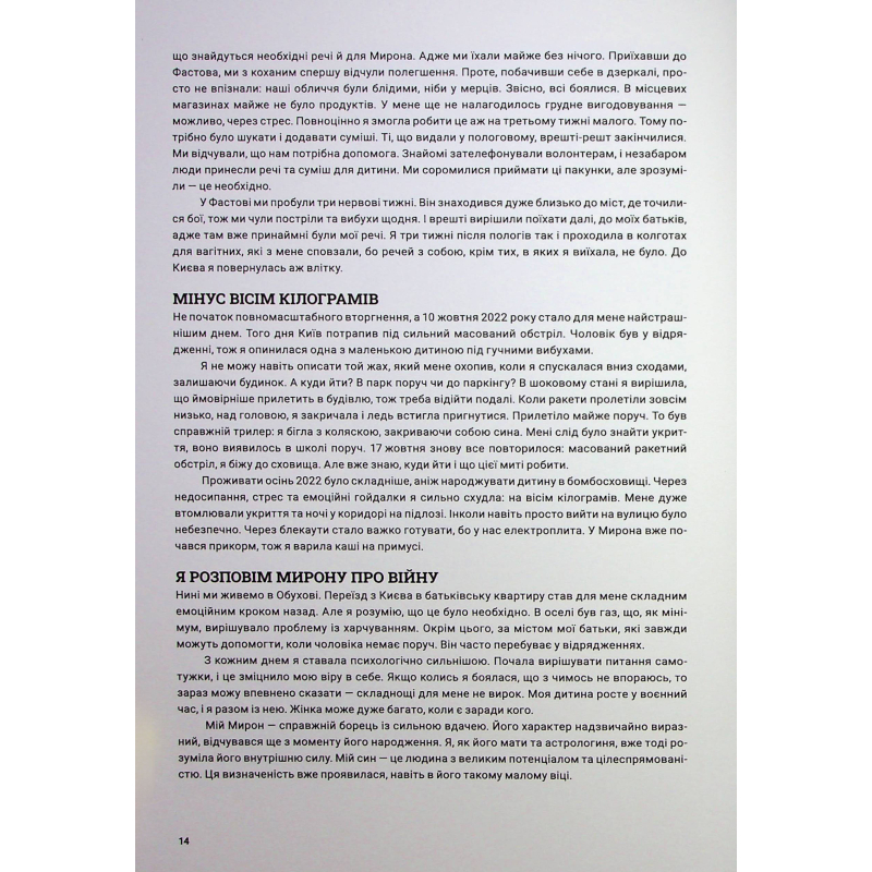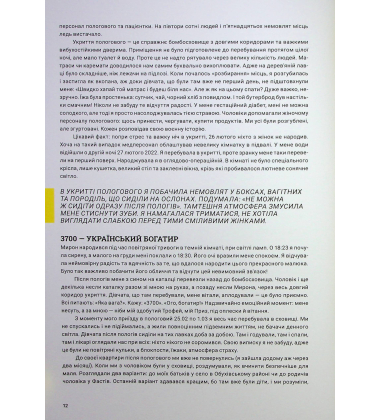 Збірка мемуарів українок, які живуть, діють, народжують розвиваються, допомагають в той час, коли йде війна. У книзі зібрано 60 мемуарів жінок з різних куточків України, від Києва до Маріуполя. Героїнями стали: волонтерки, військовині, медикині, журналістки, матері й дружини бійців, лідерки громадського сектору, відомі й впливові українки. А також породіллі, які народжували в складних умовах війни; матері, що евакуювали власних дітей від війни; жінки, що пережили окупацію, полон та ін. Ці українки подолали довгий шлях від розгубленості в перший день повномасштабного вторгнення до невпинної рішучості, що народилася згодом. І саме ухвалені рішення допомогли їм подолати шок та почати діяти. У виданні описані стани й почуття, з якими героїні зіткнулися, поглянувши в очі війні та досвід, набутий в її реаліях. Основне у мемуарах видання — це голос жінок й заклик до читача: ми корисні там, де є. Їхні монологи — історична фіксація воєнних подій та надихаючі сповіді, сповнені бажання жити попри все. Книгу створили 21 спеціалістка. Ці жінки працювали над виданням 14 місяців: проводили інтервʼю, перетворювали їх на мемуари, ілюстрували, створювали дизайн, верстали та, зрештою, надрукували. Найперше інтервʼю було записано 9 лютого 2023, а останнє - 22 квітня 2024. Ця праця — неоціненний внесок у фіксацію історичних подій, що назавжди закарбується в колективну памʼять.