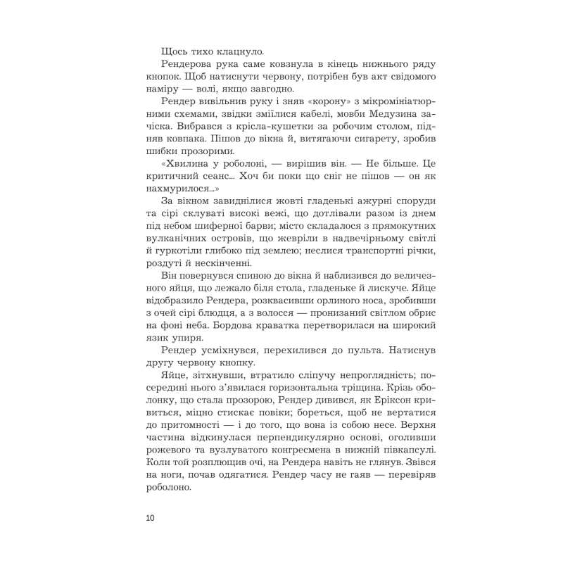Америка, недалеке майбутнє (а з нашого погляду — альтернативне минуле). Глобальні проблеми розв’язано, але людина — це досі людина, хоч і підкорює космос. Чарльз Рендер, елітний психотерапевт, допомагає клієнтам позбутися психологічних розладів, формуючи їхні сни й беручи в них активну участь. Попри майже божественну роль на сеансах, йому теж не чуже ніщо людське: він піддається спокусі застосувати методику по-новому. Ця спроба має ввійти в історію і обезсмертити Рендерове ім’я. Але є й професійні ризики: запорука повернення до реальності — власна залізна воля вершителя снів. Якщо ж він недооцінить силу психіки пацієнта, можливі небажані наслідки... Цей твір — філософський нуар від великого майстра фантастики: холодний і сніжний, як скандинавські міфи, романтичний, як Артуріана, фатально-стоїчний, як грецькі трагедії. Тут немає ні чарів, ні паралельних світів, ні прибульців. Зате нас чекає подорож у сюрреалістичне підсвідоме, звідки дуже важливо повернутися вчасно.