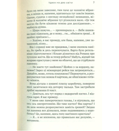 Розлучатися з героями першої книги серії «Келих див» Олени Терещенко «Маги теж кохають» не хотіли ні читачі, ні авторка, тому і з’явилася повість «Удвох на два світи». А починалося все так… Роман, звичайнісінький студент, через помсту своєї дівчини-чаклунки потрапляє до іншого світу, в іншу епоху й опиняється в домі магістра Вищої Академії магів Марти Вольської. Він намагається пристосуватися до чужого світу, однак не полишає задуму повернутися додому. Марта обіцяє допомогти, але, займаючись спільною справою, так легко закохатися… Роман, який відкрив у себе здібності до магії, уже не впевнений, що хоче повертатися у свій світ. Магам доводиться протистояти інтригам недругів, робити відкриття, уникати численних загроз. Ще й Келих див, який мав би повернути Романа додому, може врятувати місцевих жителів підземелля від прокляття. Романові вдається здійснити це, але раптом зла сила повертає його до світу, з якого він прибув. Виклик — як бути далі? — постав уже перед Мартою…