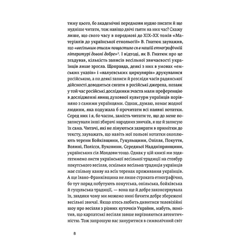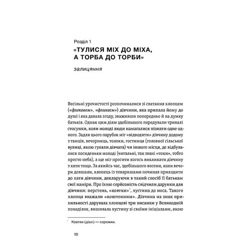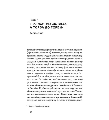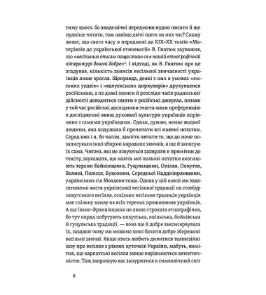 Облити водою чи навіть штовхнути в річку, обдарувати писанками, вишитими хустинками та сорочками — так починався шлях до шлюбу в наших пращурів. Як можна було відмовити сватам, окрім піднести гарбуза? Чому прохання напитися води зовсім не таке невинне, як може видатися на перший погляд? Що віщує молодятам тріснутий коровай і що таке весільне деревце? Скільки калачів знадобиться для автентичного весілля і кого молодій запрошувати до танцю першими? А ще навіщо наречена мусила розпрягати коней або пити з решета? Етнологиня Леся Горошко-Погорецька у своїй книжці описує всі етапи автентичного українського весілля — від залицяння й сватання до переїзду молодої в дім молодого та повʼязування жіночого головного убору. Ви не лише дізнаєтеся, як відбувалося традиційне українське весілля, а й зможете відтворити окремі його звичаї.