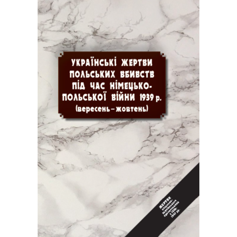 У виданні подано списки українських жертв (загиблих і поранених) вересня–жовтня 1939 р. серед населення західних територій України, а саме: Волинського, Люблинського, Львівського, Поліського, Станиславівського і Тернопільського воєводств, які становили тоді частину польської держави. Після опрацювання великого документального матеріалу в архівах України й Польщі, а також аналізу основного корпусу наукової літератури, споминів і свідчень, автор встановив максимально повний, який можливий з огляду на нинішній стан дослідження теми, іменний перелік жертв. Книжка має характер мартиролога, в якому представлено за воєводствами, повітами, містами, містечками та селами перелік усіх встановлених на цей час українських жертв. Видання доповнює наукова розвідка про хід військових подій під час німецько-польської війни та захоплення західноукраїнських земель Совєтським Союзом, карти й сумарні статистичні таблиці та зіставлення. Цей том логічно продовжує видавничу серію «Жертви польсько-українського протистояння у 1939–1947 рр.», яка охоплює всю територію, на якій точився кривавий польсько-український конфлікт у період Другої світової війни та в перші повоєнні роки. Наступні томи представлять українські втрати на територіях Волині, Галичини та землях, котрі після війни залишилися на захід від українського кордону (Бойківщина, Надсяння, Лемківщина, Холмщина та Підляшшя). Видання призначене для науковців, краєзнавців, викладачів, дослідників генеалогії та всіх, хто зацікавлений минулим. Однак першим адресатом цього пом’яника є ті, котрі в цьому кривавому конфлікті втратили рідних і близьких.
