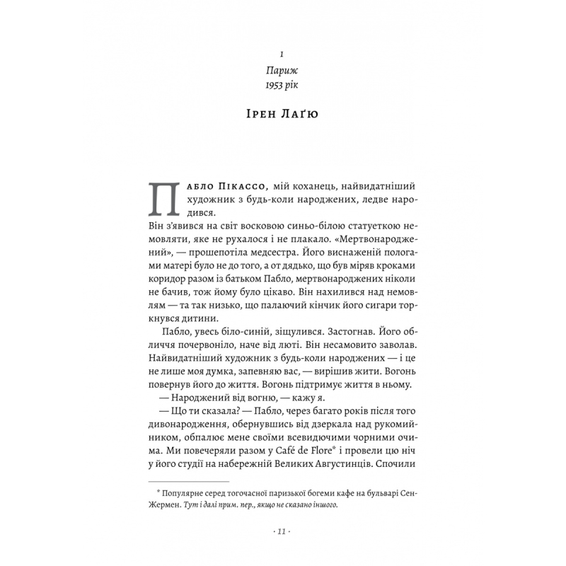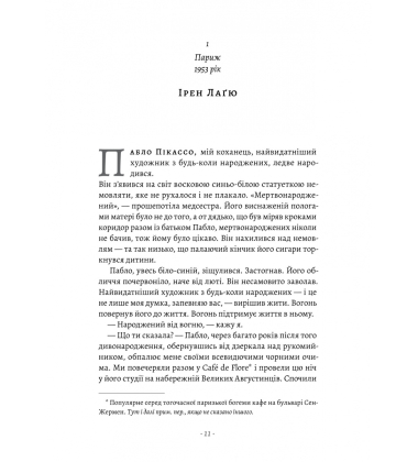 Заплутаний і водночас виразний портрет жінок, які внаслідок любовних інтриг, численних скандалів і мистецтва потрапили в епіцентр життя геніального Пікассо — але цього разу пензля триматимуть вони самі. Алана — молода журналістка. Її матір померла і не залишила по собі нічого, окрім ниточок, що ведуть у 1923 рік, де гламурні жінки — героїні життя Пікассо — існували у тіні слави митця. Сповнена рішучості розкрити те, ким насправді була її матір, Алана розшукує їх — жінок, які знали правду, що ховається під полотнами художника: ревнива дружина, коханка-художниця, американка-господиня й таємнича іспанська покоївка, яка полонила погляд і пензель Пікассо на одне спокусливе літо. Але ким насправді були ці жінки і що з ними сталося? І що врешті станеться з нею?